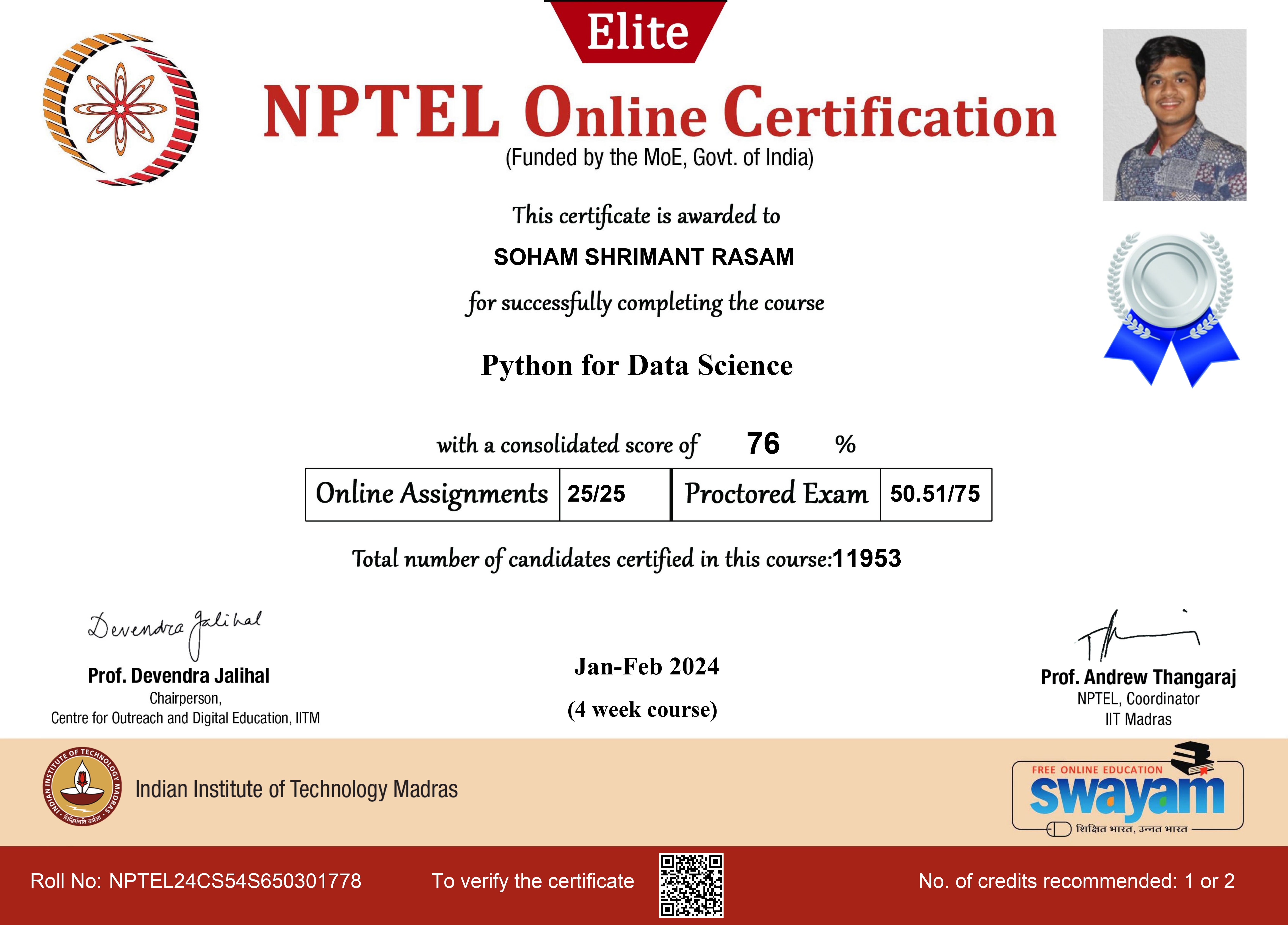 Hello! I'm Soham Rasam, a passionate data science enthusiast and web developer.I am dedicated to transforming complex data into actionable insights and user-friendly digital experiences. My expertise spans across data analysis, using tools like NumPy and pandas, as well as web development technologies that bring dynamic web solutions to life.